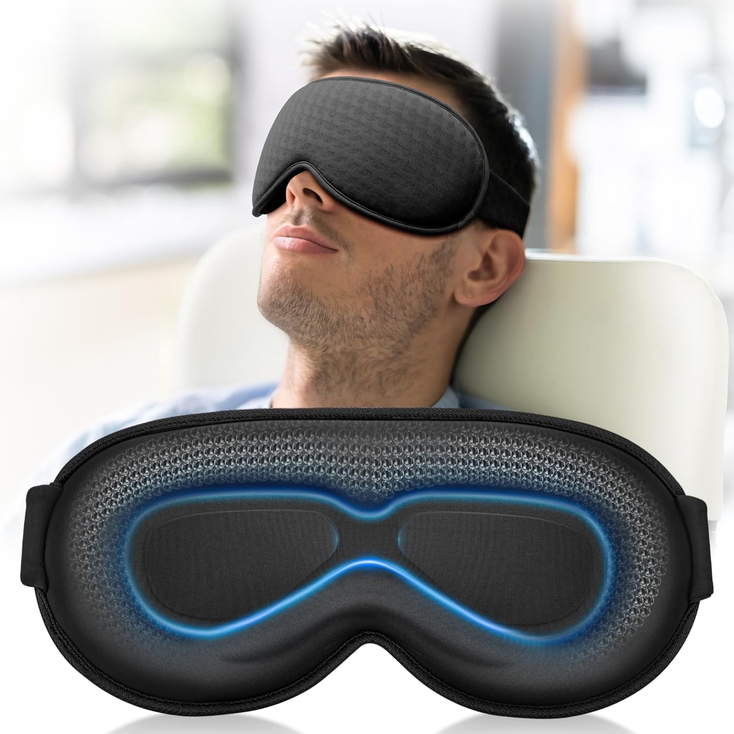 • Weighted Eye Masks for Sleep – 100% Blackout, Lash Extension Eye Covers,3D Contoured – Airplane Travel Nap Essentials – Memory Foam, Business Style, Black